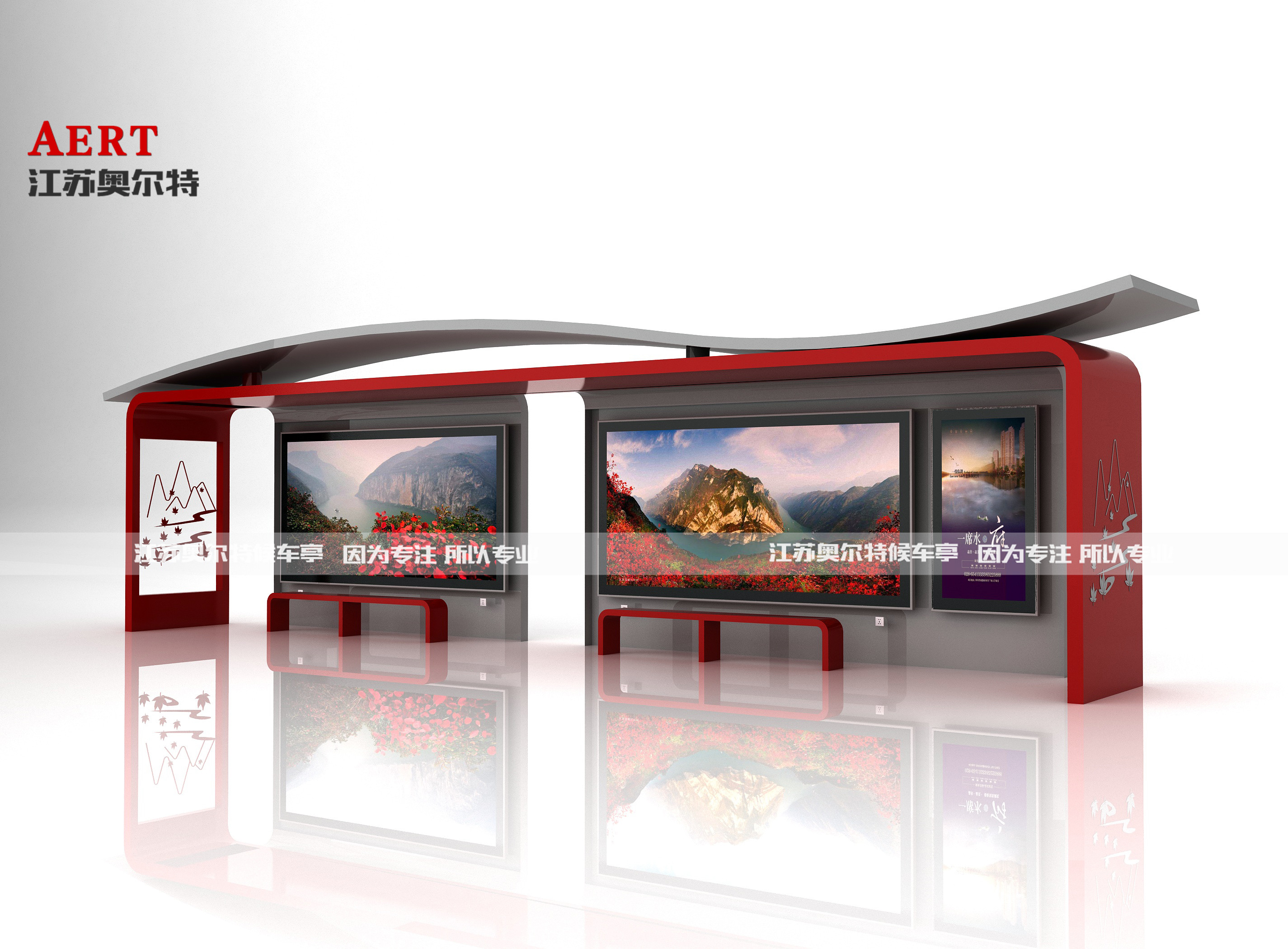 | 候車亭尺寸 | 一大一小尺寸:寬7米,高2.9米,寬1.5米 二大一小尺寸:寬12米,高2.9米,寬1.5米 三大一小尺寸:寬17米,高2.9米,寬1.5米 標準大燈箱尺寸:寬3.65米,高1.8米 標準小燈箱尺寸:寬1.2米,高1.8米 注:可根據客戶需求進行定制,采用模塊化設計,組合方式靈活多變。 |