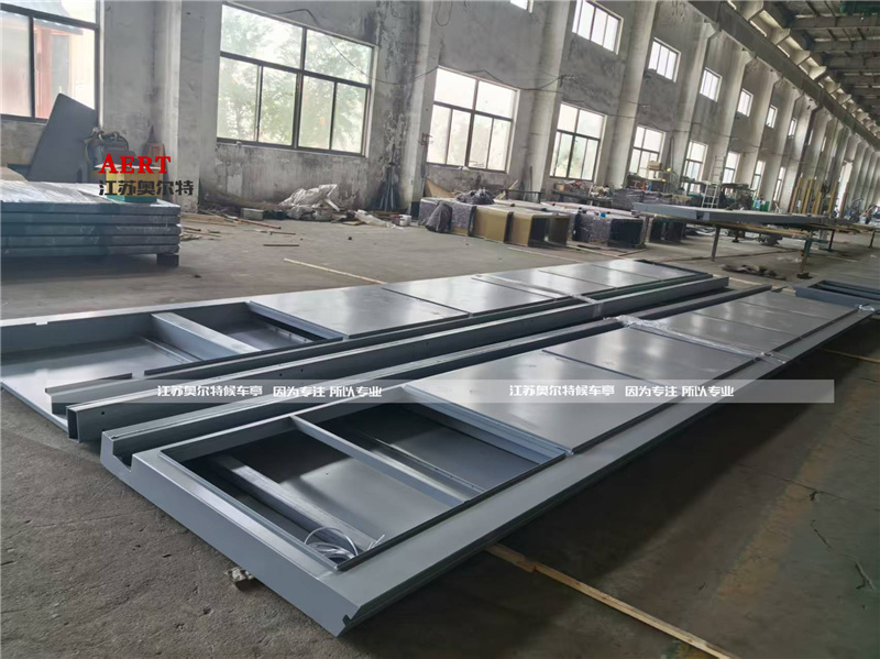 - 鋼結構停車棚 :內部框架采用方鋼焊接成型,整體結構牢固,抗震防風系數高,外封板可采用鍍鋅板等材質,經噴涂處理后,耐酸堿腐蝕,外觀簡潔大方。