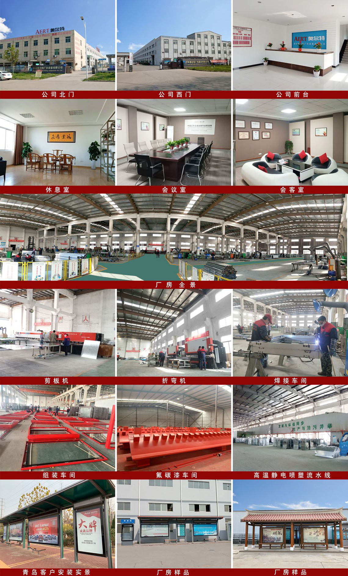 公司擁有設計、生產能力,有專業產品設計、工藝研發工程師5人,現有生產面積10000平方米,員工200余人,已經形成以公交候車亭為主線的專業團隊。公司先后引進了一批最新型的數控折彎機、數控剪板機、數控等離子切割機、數控沖床等加工設備和噴塑流水線,滿足了不同規格的鋼結構、不銹鋼和鋁型材加工工藝和質量的需求。
